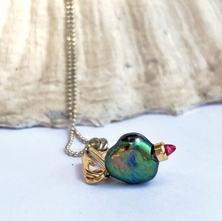 Peacock Pearl Charm ($540): Featuring a unique peacock pearl with iridescent hues, the charm embodies oceanic vibes.